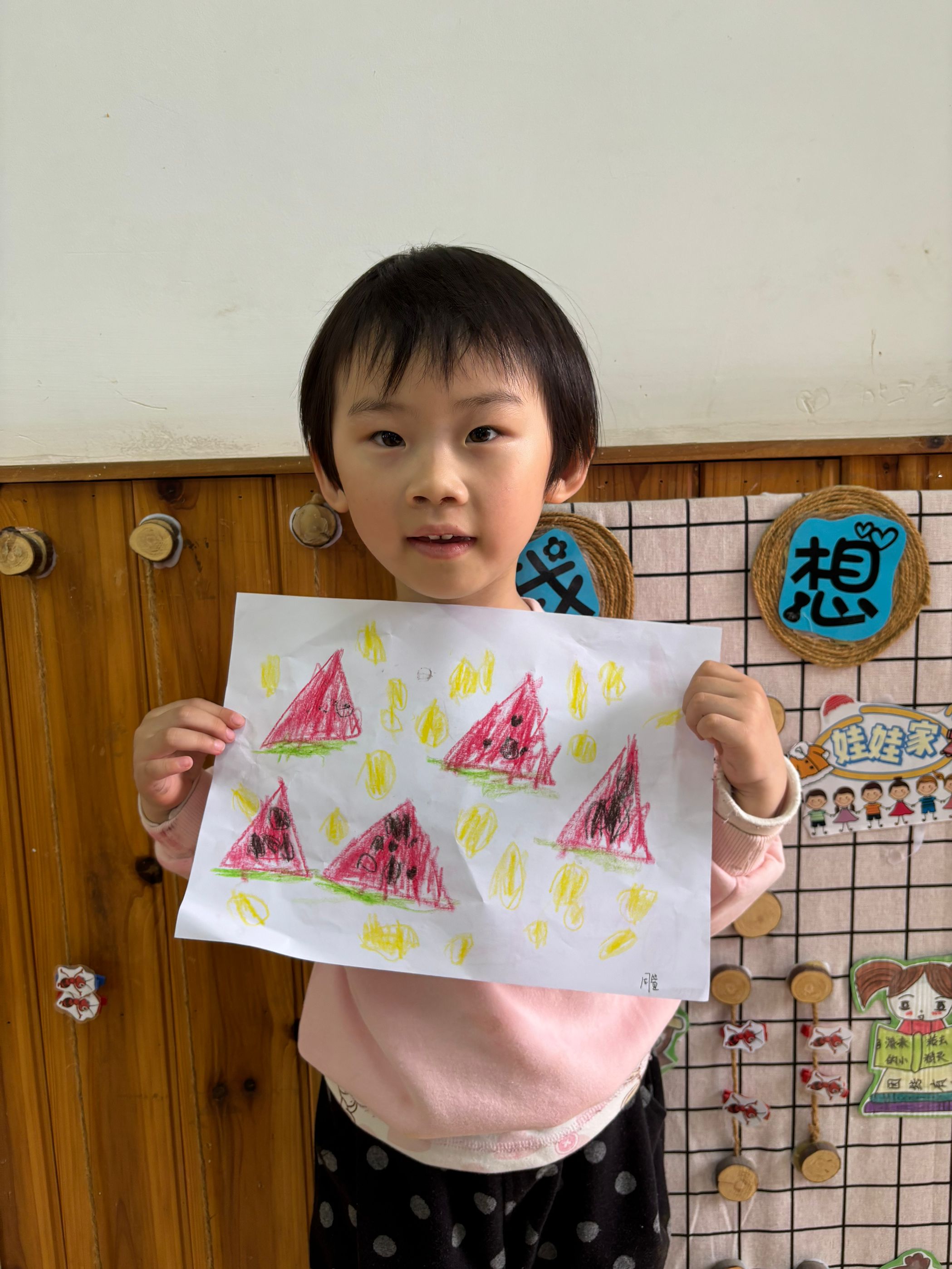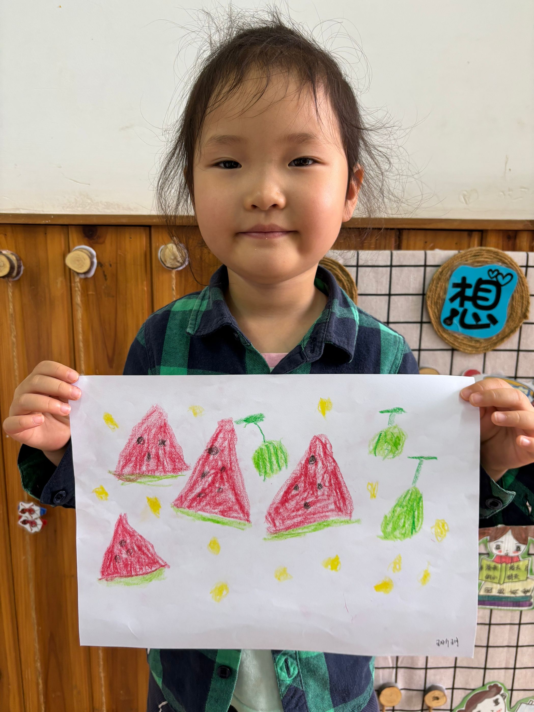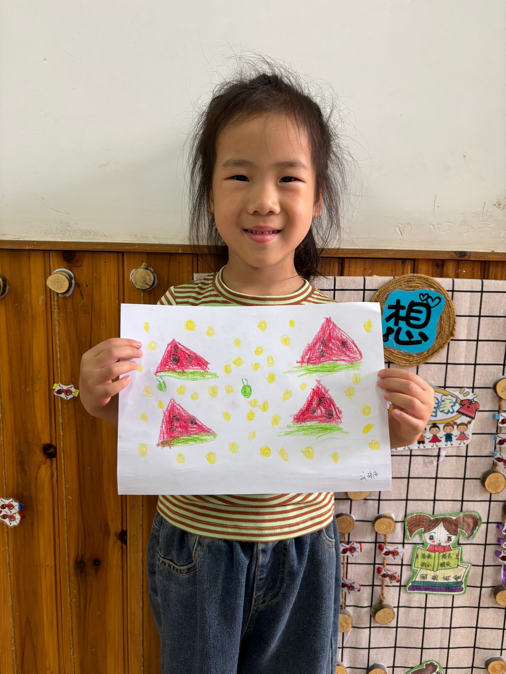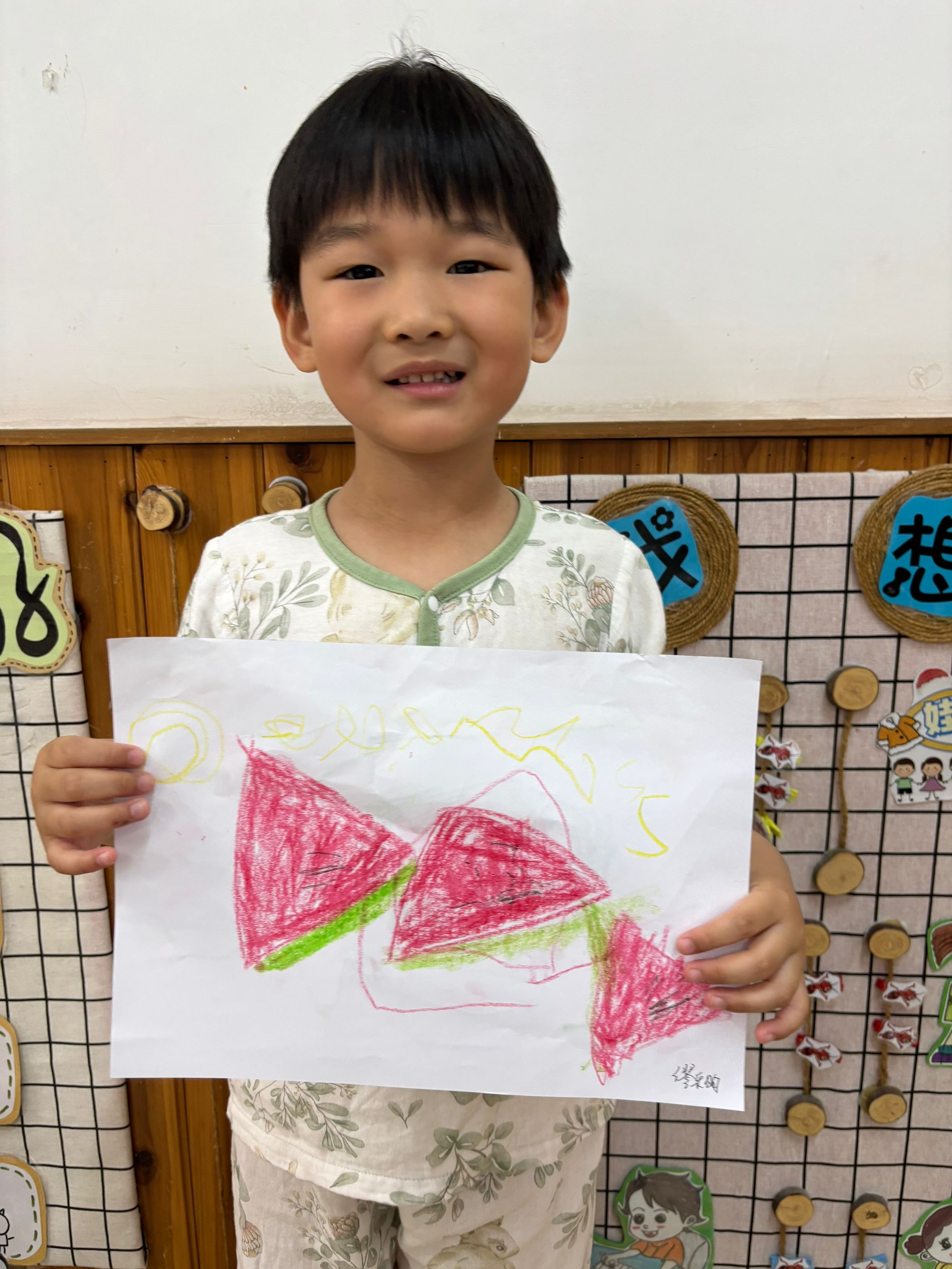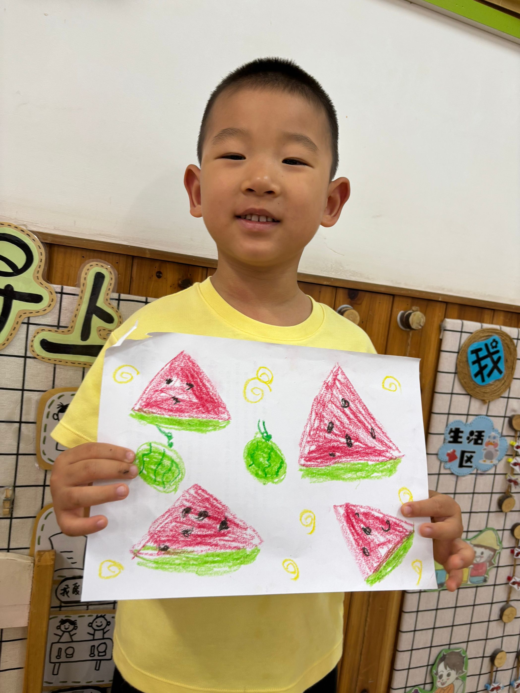 画完西瓜,我们可以一起品尝一下,看谁画得最好吃