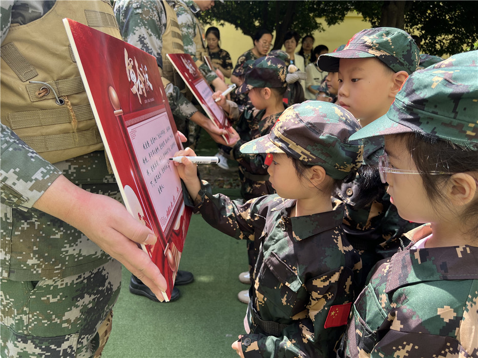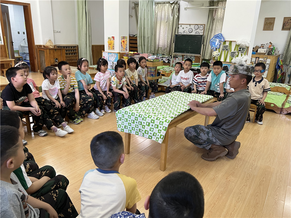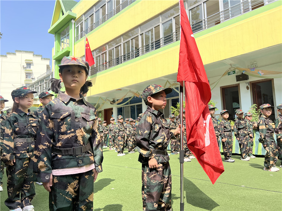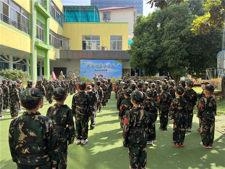 这不,大地小小兵们穿上迷彩服,戴上小军帽,正式成为“小小兵”。