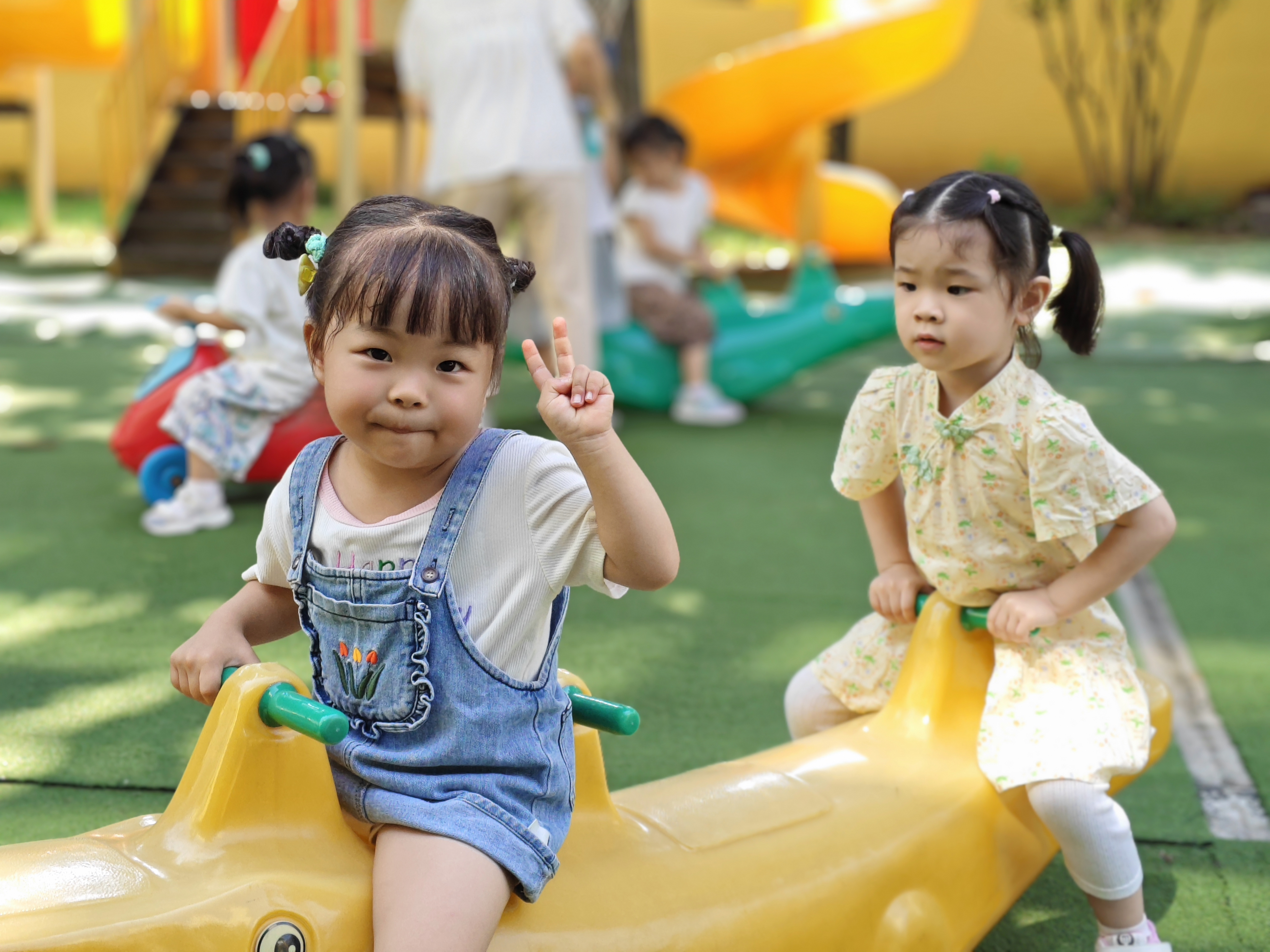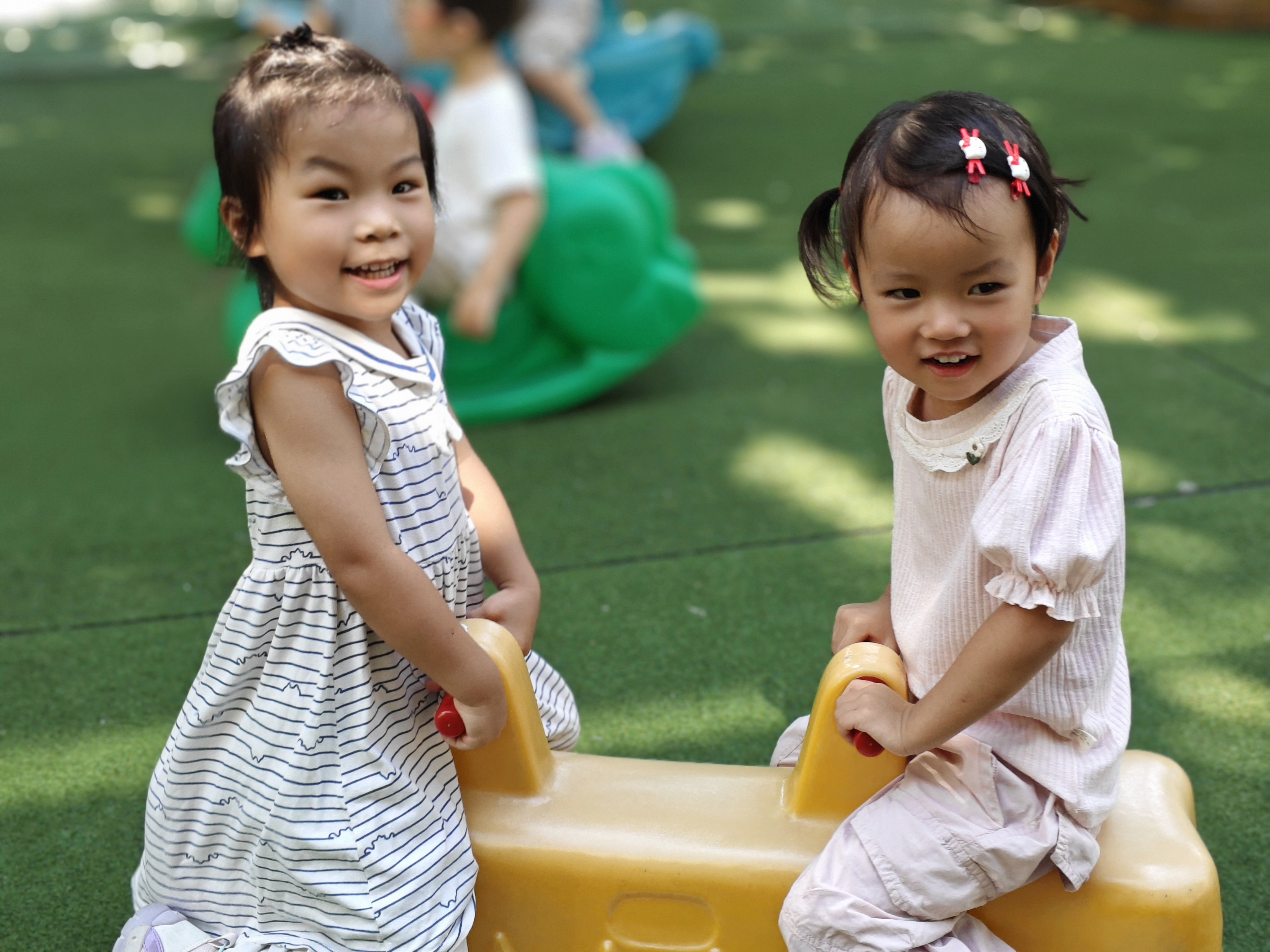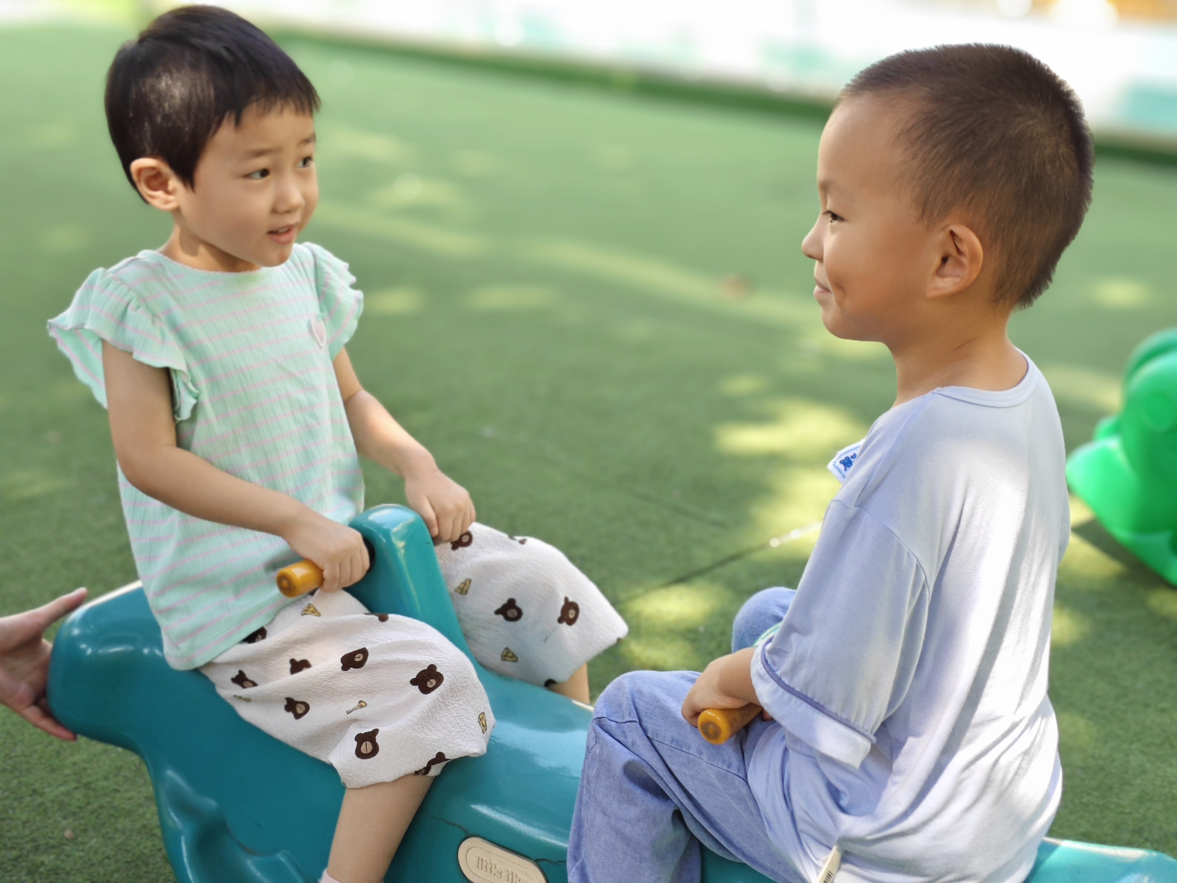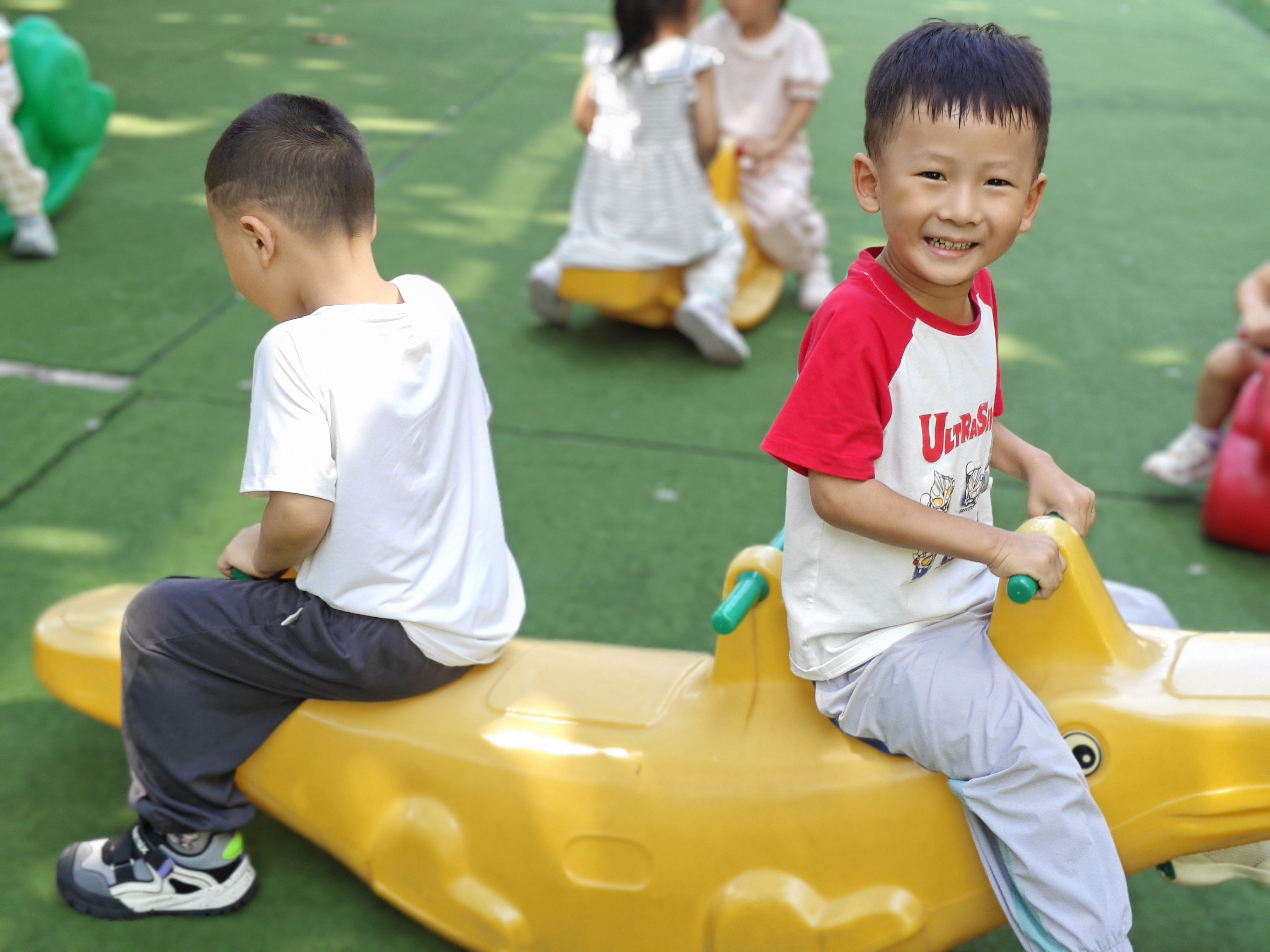 摇摇马是我的最爱!我和小朋友一上一下,好玩极了!玩累了,我们就躺在草地上,看天上的云朵变魔术,一会儿变成可爱的小兔子,一会儿又变成大大的棉花糖。