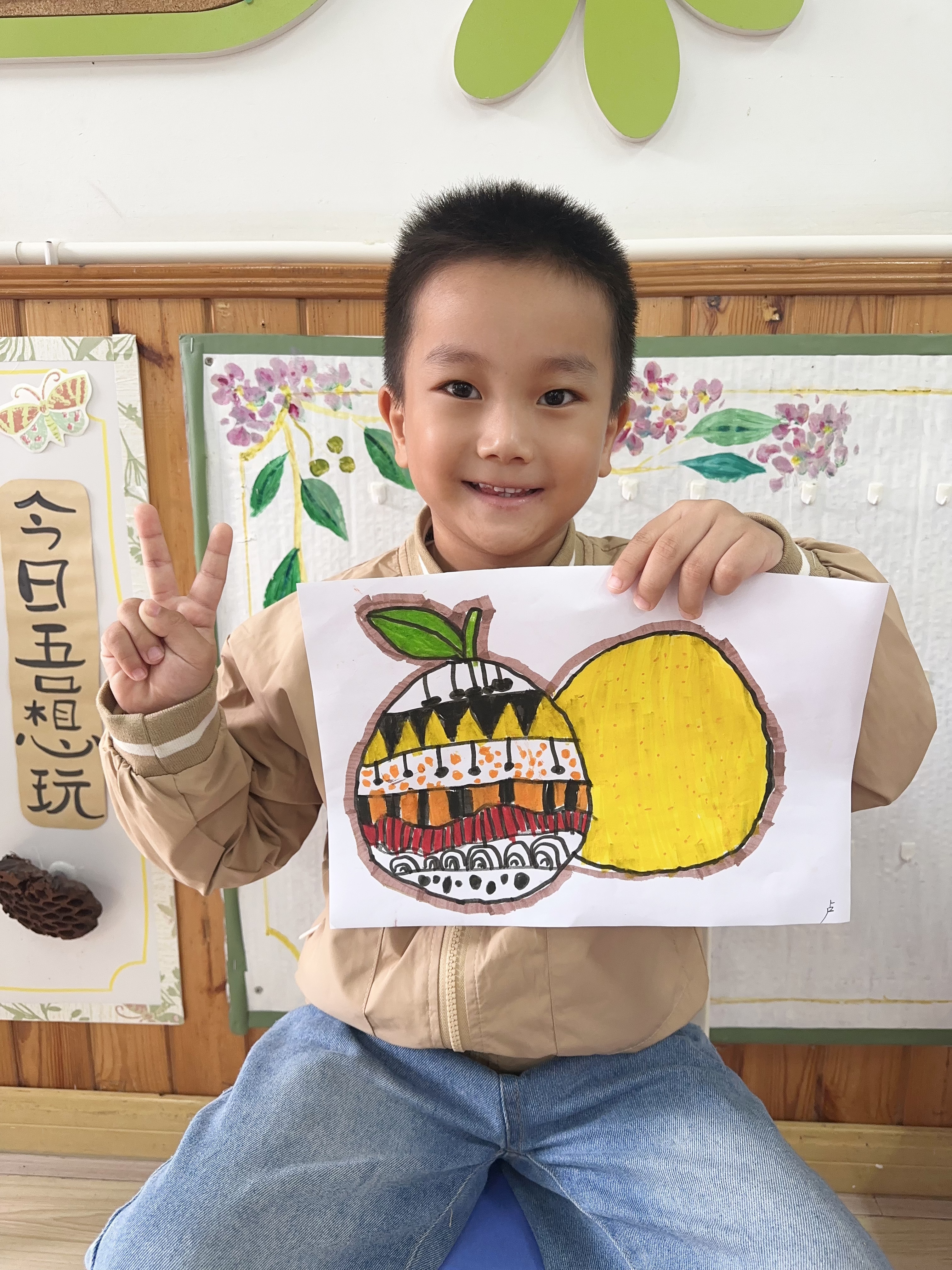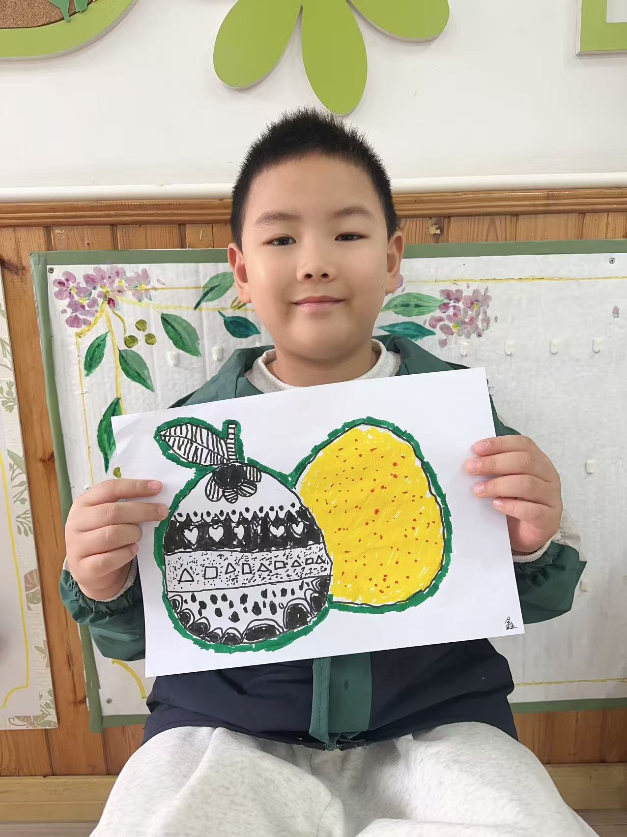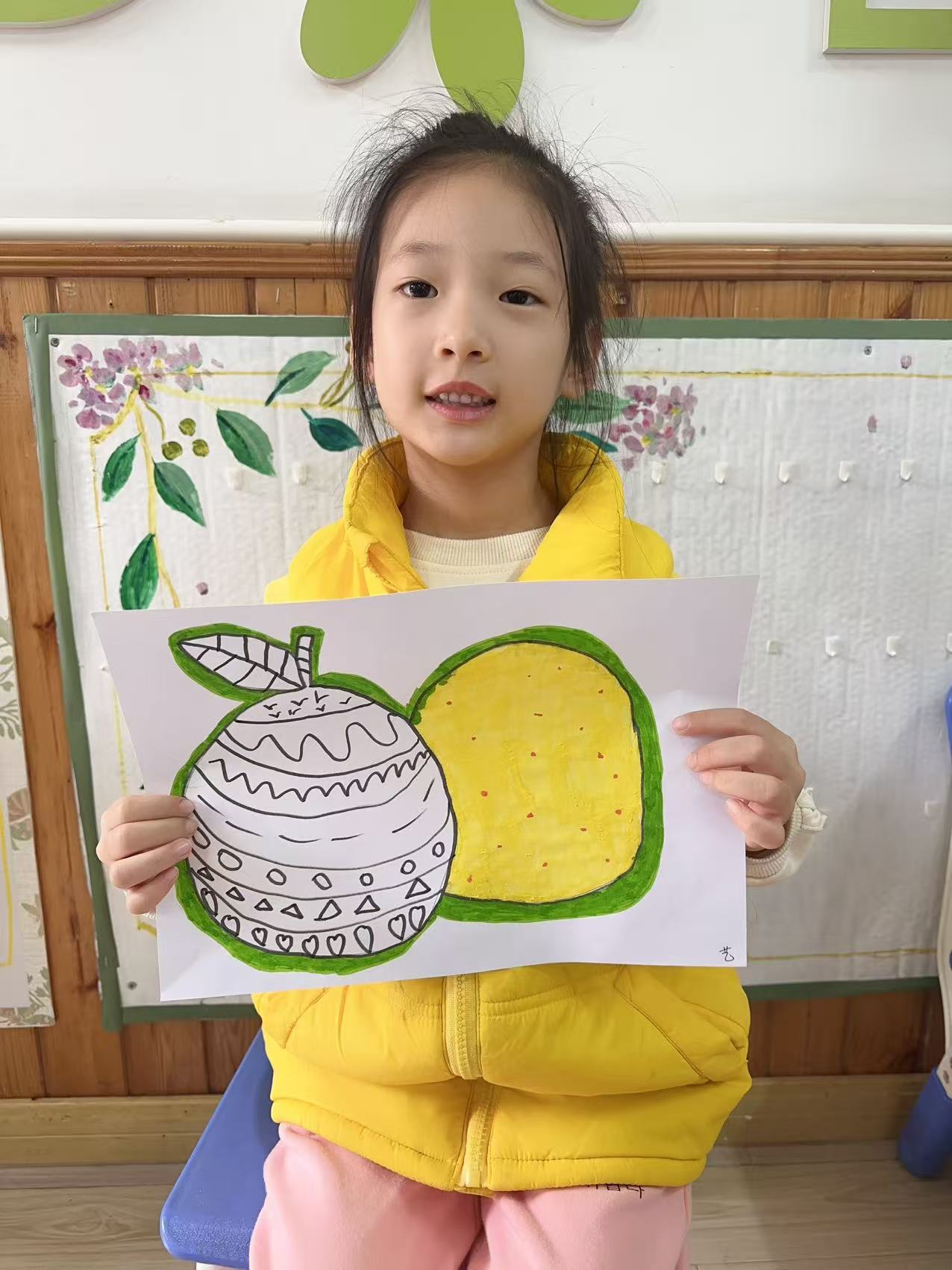 秋风起,柚香飘。孩子们对圆圆大大的柚子充满好奇,于是,我们就拿起笔一起来绘画柚子吧~