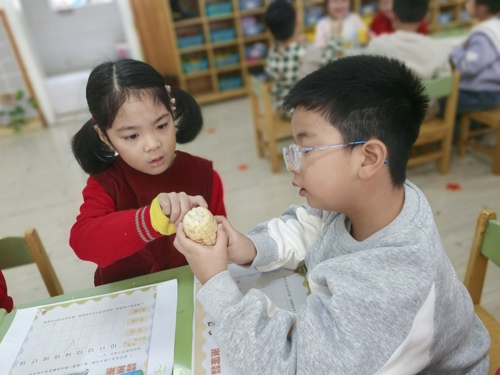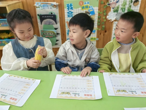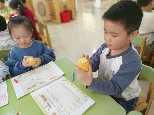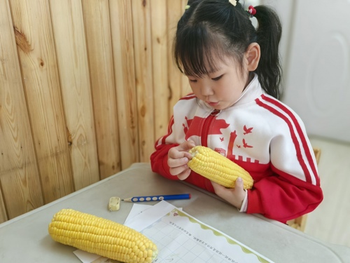 “我数了14粒”,“我数了16粒”......是不是全是偶数?通过数玉米的活动,孩子们发现了玉米里的小秘密!不管是甜玉米、糯玉米、黑玉米,每圈玉米粒总和一定是偶数!