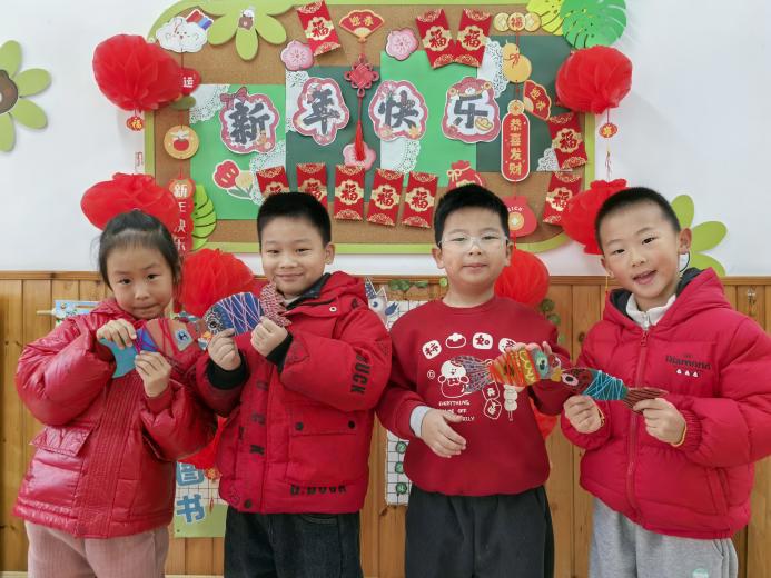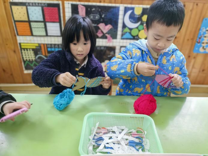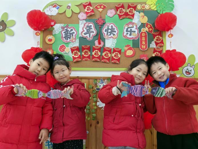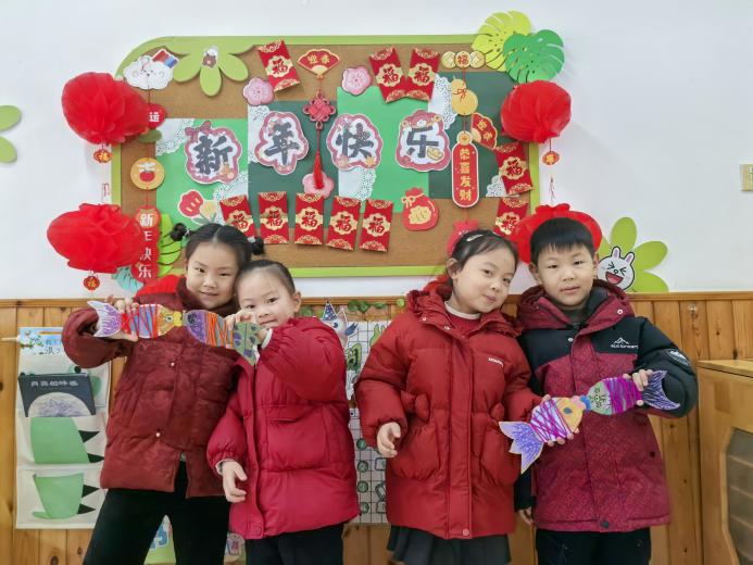 萌娃们沉浸在“年年有‘鱼’”手工小世界里~小手掌捏着彩线、纸板,认真勾勒小鱼模样。做完后,大家围在一起,抱着亲手做的小鱼笑开了花,满是对新年的甜甜期盼,温馨又治愈~